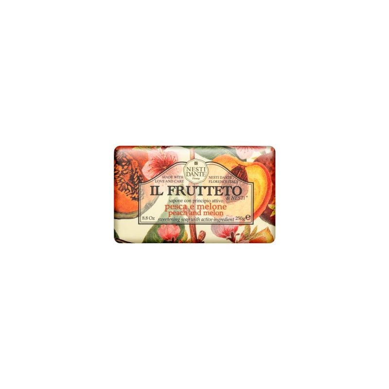 Nesti Dante Il Frutetto mýdlo Peach & Melon 250 g přináší do vaší koupelny osvěžující zážitek z italské péče. Toto luxusní mýdlo, vyrobené z přírodních ingrediencí, kombinuje jemnost broskve a revitalizující sílu melounu. Jeho unikátní složení respektuje přirozenou rovnováhu pokožky, čímž zajišťuje hydrataci a výživu. Mýdlo je ideální pro každodenní použití, ať už po náročném dni nebo po sportu. Vhodné pro všechny typy pleti, zanechává pokožku hebkou a svěží. Dopřejte si chvíli relaxace s tímto elegantním mýdlem, které spojuje tradici a kvalitu.