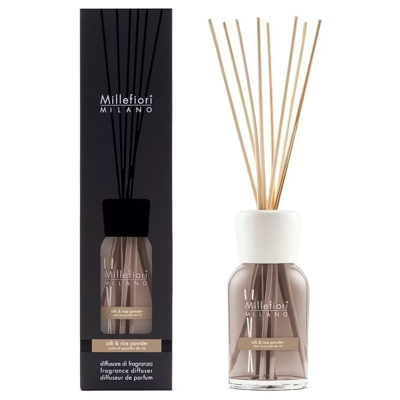 Aroma difuzér Natural Silk & Rice Powder od značky Millefiori Milano přináší do vašeho domova jedinečnou květinovou pudrovou vůni, která vytváří klidnou a luxusní atmosféru. Složení zahrnuje jemné tóny ovesného mléka a rýžového prášku, doplněné o heřmánek, bílý jasmín a ylang ylang, což zaručuje harmonické spojení přírody a elegance. Tento designový kousek je ideální pro větší prostory a jeho výdrž dosahuje 6-7 měsíců. Po vyprázdnění je možné difuzér snadno doplnit. Ponořte stébla do lahvičky a nechte se unést vůní, která obohatí vaše smysly a přinese do vašeho domova pocit pohody.