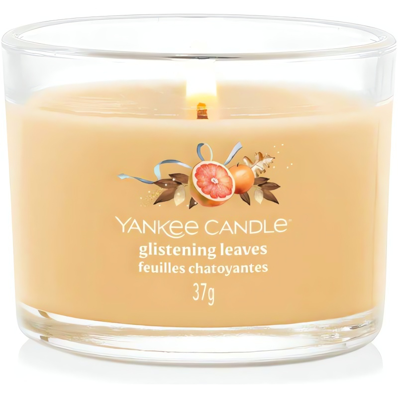 Vonná svíčka Yankee Candle Glistening Leaves o hmotnosti 37 g přináší do vašeho domova osvěžující citrusovou vůni, která je ideální pro podzimní večery. Složení zahrnuje eukalyptus, grapefruit a citron, které se mísí se zelenými tóny, jasmínem a růží, a vytváří tak harmonickou atmosféru. Bavlněný knot zajišťuje rovnoměrné hoření a intenzivní zážitek po dobu 8–10 hodin. Tato unisex svíčka je skvělým doplňkem pro relaxaci po náročném dni a dodává interiéru svěžest. Svíčka Glistening Leaves je nejen krásným dekorativním prvkem, ale také ideálním dárkem pro vaše blízké. Užívejte si klidné chvíle s touto elegantní vůní.