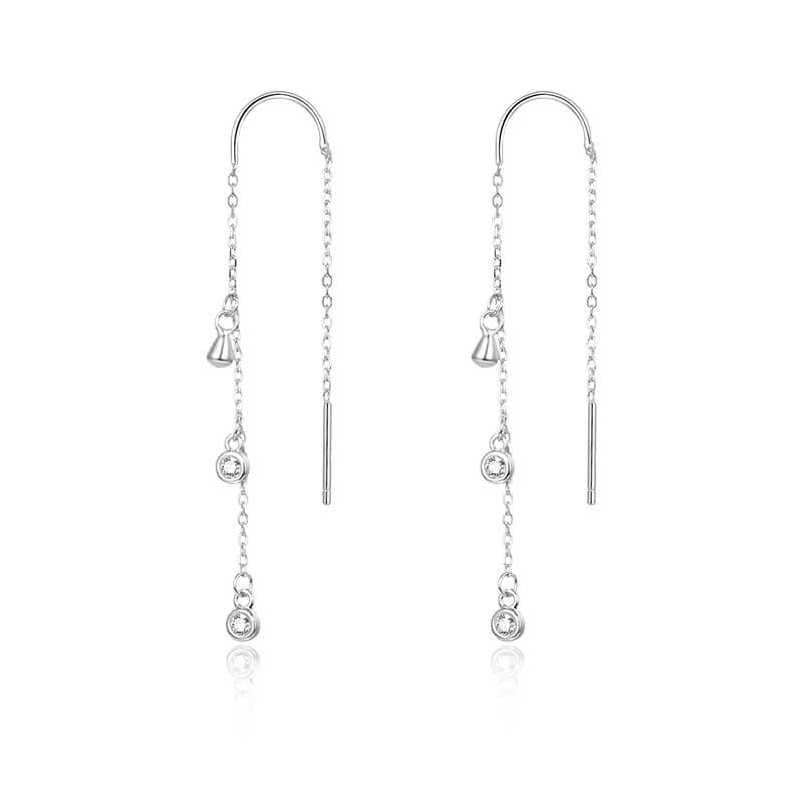 Dlouhé stříbrné náušnice se zirkony od značky Beneto představují dokonalou kombinaci elegance a moderního designu. Vyrobené z kvalitního stříbra 925/1000, tyto náušnice mají rhodiovaný povrch, který nejen zajišťuje lesk, ale také snižuje riziko alergických reakcí. Délka náušnic činí 5, 7 cm, přičemž každý řetízek je ozdoben čirými zirkony, které jemně odrážejí světlo a dodávají šperku výjimečný šarm. Snadné navlékání provléknutím zaručuje pohodlné nošení. Ideální pro každou příležitost, tyto náušnice se skvěle hodí jako dárek pro zvláštní chvíle. Doporučuje se přikoupit dárkovou krabičku pro elegantní prezentaci.