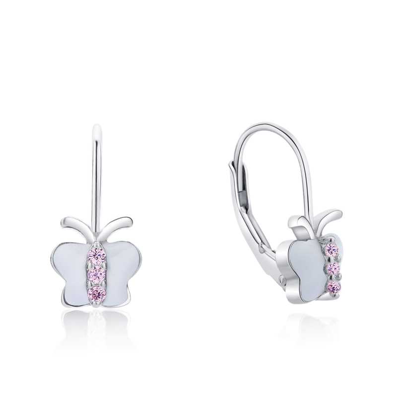 Náušnice Motýlci od značky MOISS představují dokonalou kombinaci elegance a kvality. Vyrobeny jsou z prémiového stříbra 925/1000 a mají rhodiovaný povrch, který zajišťuje dlouhotrvající lesk a odolnost vůči alergiím. Jemné bílé smaltové detaily a třpytivé světle růžové zirkony dodávají šperkům na jedinečnosti. Pro zachování jejich krásy doporučujeme šperky uchovávat v suchu a vyhýbat se kontaktu s vodou a agresivními chemikáliemi. Díky bezpečnostnímu zapínání na klapku se pohodlně nosí, což z nich činí ideální volbu pro každodenní nošení i speciální příležitosti.