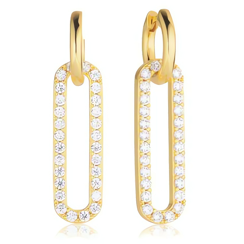 Elegantní pozlacené visací náušnice 2v1 od značky Sif Jakobs představují dokonalou kombinaci stylu a univerzálnosti. Vyrobené z kvalitního stříbra a pozlacené 18k žlutým zlatem, tyto náušnice dodávají každému outfitu nádech luxusu. Tvar oblíbených kruhů je zdoben přívěsky oválu s precizně broušenými kubickými zirkony, které odrážejí světlo a přitahují pozornost. Možnost snadného sundání přívěsku umožňuje proměnit náušnice na půvabné kruhy, což z nich činí ideální doplněk pro různé příležitosti. Zapínání na kloub zajišťuje bezpečné nošení po celý den. Ozdobte svůj styl šperkem, který vyjadřuje eleganci a kvalitu.