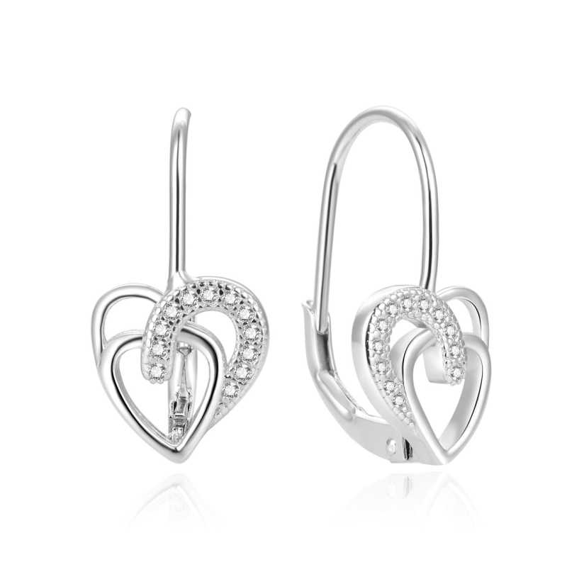 Tyto elegantní visací náušnice značky Beneto jsou dokonalým šperkem pro každou příležitost. Vyrobeny z kvalitního sterlingového stříbra, potažené rhodiem, které zajišťuje nejen vysoký lesk, ale také minimalizuje alergické reakce. Design zdobí něžná srdíčka, symbolizující lásku a něhu, a čiré zirkony, které dodávají šperku jiskru a půvab. S rozměrem 1, 7 x 1 x 1, 1 cm a bezpečným zapínáním na klapku jsou náušnice nejen krásné, ale i praktické. Ozdobte svůj vzhled stylovým šperkem, který vyjadřuje vaše city. Pro dokonalou prezentaci zvažte pořízení dárkové krabičky z nabídky.