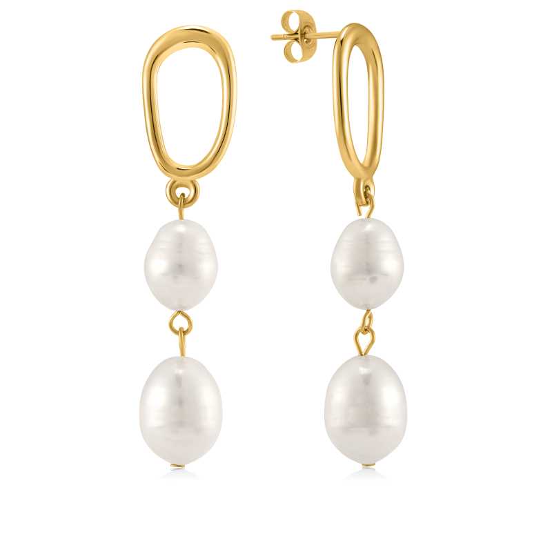 Nádherné pozlacené náušnice s perlami značky Troli představují elegantní doplněk pro každou příležitost. Kvalitní ocel, pokrytá žlutým zlatem, zajišťuje trvanlivost a luxusní vzhled. Délka náušnic činí 5, 3 cm, na oválcích visí dvě jemné sladkovodní perly, které dodávají šperku nádech sofistikovanosti. Tento design symbolizuje čistotu a krásu, což z něj činí ideální volbu pro ženy, které chtějí podtrhnout svou osobnost. Bezpečnostní zapínání na puzetku vám poskytne jistotu, že náušnice zůstanou na svém místě. Ozdobte se šperkem, který dokonale doplní jak večerní róbu, tak každodenní outfit.
