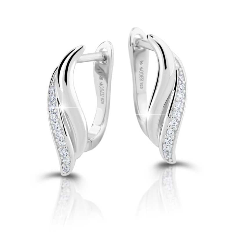 Elegantní stříbrné visací náušnice se zirkony od značky Modesi jsou dokonalým doplňkem pro každou příležitost. Jejich minimalistický design je umocněn oslnivým třpytem deseti čirých zirkonů, které dodávají šperku nádech luxusu. Vyrobeny z kvalitního sterlingového stříbra a opatřeny rhodiovaným povrchem, tyto náušnice jsou nejen krásné, ale i hypoalergenní, což minimalizuje riziko alergických reakcí. Délka 1, 9 cm a šířka 1, 1 cm činí náušnice ideální volbou pro zdůraznění vaší osobnosti. Bezpečnostní zapínání na patent zajišťuje, že šperk zůstane na svém místě. Hýčkejte se tímto jedinečným kouskem, který v sobě nese symbol krásy a rafinovanosti.