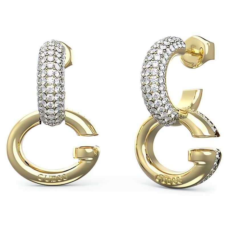 Pozlacené kruhové náušnice značky Guess kombinují nadčasový design s moderní elegancí. Vyrobené z kvalitní oceli a pokovené zlatým PVD povlakem, tyto náušnice jsou nejen krásné, ale také odolné. Jejich výška 2, 4 cm a jemné osazení blyštivými krystaly dodává každému outfitu šmrnc a glamour nádech. Stylová ozdoba ve tvaru písmene G a jasné krystaly přitahují pozornost a podtrhují osobnost nositelky. Zapínání na puzetku zajišťuje pohodlné nošení po celý den. V originálním látkovém sáčku s logem značky se stává skvělým dárkem pro každou ženu, která ocení kvalitní šperky.