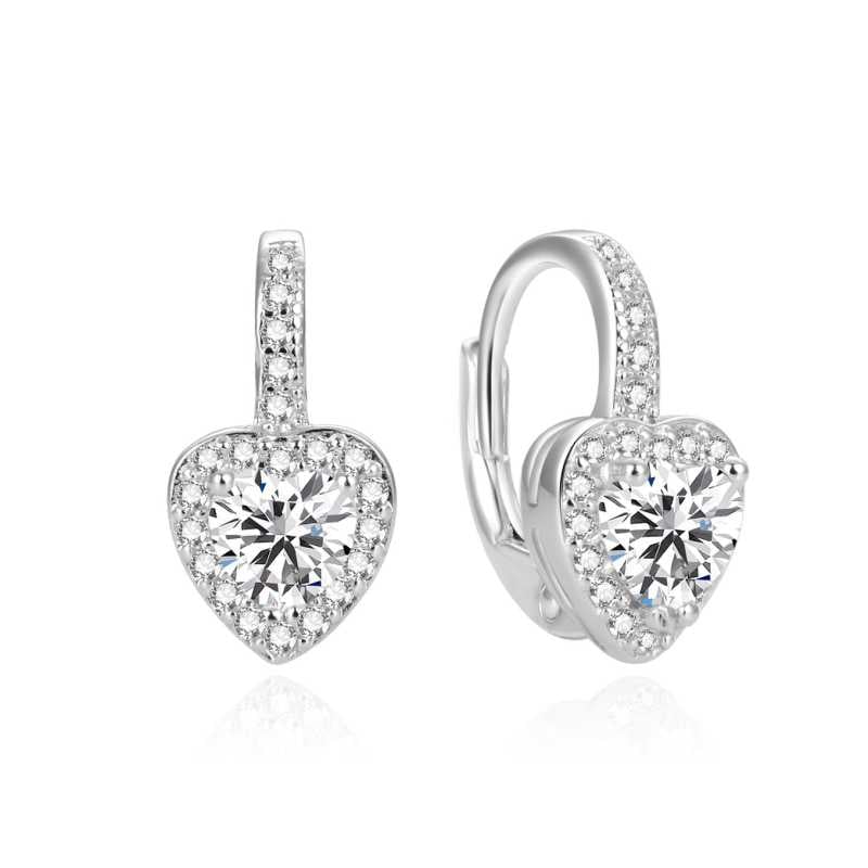 Romantické náušnice ve tvaru srdíček značky Beneto jsou elegantním doplňkem, který podtrhne vaši osobnost. Vyrobené ze stříbra 925/1000 a opatřené rhodiovaným povrchem, tyto náušnice minimalizují alergické reakce a dlouhodobě si zachovávají svůj lesk. Precizně broušené čiré zirkony ve tvaru srdce, obklopené drobnými zirkony, dodávají šperku oslnivý třpyt. Délka náušnic je 1, 5 cm a šířka 0, 8 cm, přičemž bezpečnostní zapínání na klapku zajišťuje pohodlné nošení. Tyto náušnice symbolizují lásku a něhu, ideální pro každou příležitost. Objevte kvalitu, na kterou se můžete spolehnout.