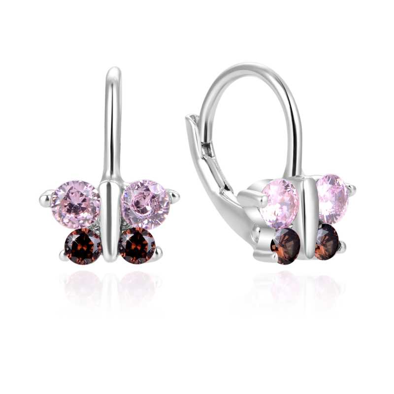 Slušivé stříbrné náušnice ve tvaru motýlků přinášejí do Vašeho šperkovníku hravou eleganci. Vyrobené z kvalitního stříbra a s rhodiovaným povrchem, minimalizují výskyt alergických reakcí a zachovávají dlouhotrvající lesk. Třpytivé zirkony v růžové a hnědé barvě dodávají těmto náušnicím barevný akcent, který dokonale doplní každý outfit. Délka 1, 3 cm a šířka 0, 9 cm činí z těchto náušnic ideální doplněk pro ženy i děti. Bezpečné zapínání na klapku zaručuje, že se Vám náušnice neztratí. Objevte kouzlo šperků, které Vás potěší a osvěží každodenní styl.