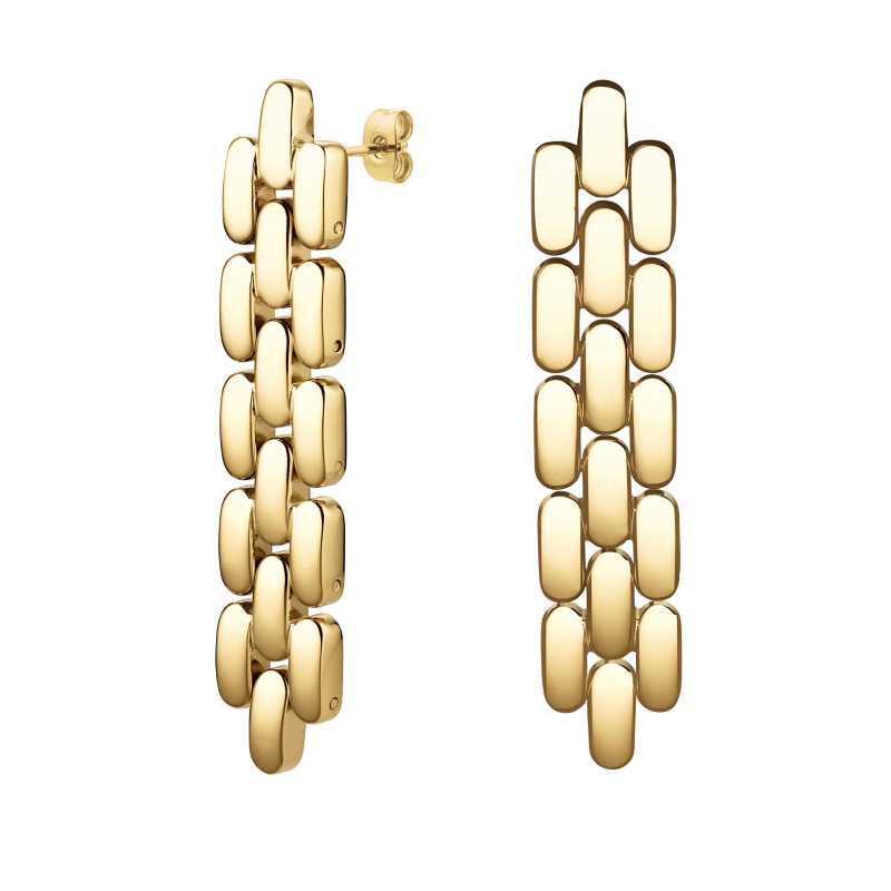 Pozlacené visací náušnice Legacy od značky Rosefield jsou skvostem, který vyniká svou elegancí a nadčasovým designem. Vyrobené z kvalitní oceli a pozlacené 14karátovým žlutým zlatem, dodávají šperku luxusní vzhled. S délkou 5 cm a šířkou 1 cm nabízí výrazné provedení, které oživí jakýkoliv outfit. Bezpečnostní zapínání na puzetku zajišťuje komfort a ochranu proti ztrátě. Tento šperk může symbolizovat nejen osobní styl, ale také sebevědomí a ženskou sílu. Dodávány v originálním balení, jsou ideální volbou pro každou příležitost.