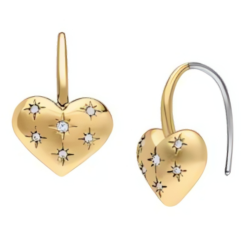 Visací náušnice Sadie od značky Fossil představují dokonalou kombinaci elegance a romantiky. Vyrobené z kvalitní oceli a částečně pozlacené žlutým PVD, tyto náušnice s motivem srdíček přinášejí do vašeho šperkovnice nádech něžnosti. Čiré skleněné kamínky dodávají šperku půvabný třpyt, který zachytí pohledy a podtrhne vaši ženskost. Délka 1, 33 cm a šířka srdíčka 1, 05 cm činí tyto náušnice ideální volbou pro každodenní nošení i speciální příležitosti. S háčkovým zapínáním se snadno nasazují a pohodlně nosí. Originální balení zaručuje, že se jedná o skvělý dárek pro každou ženu.