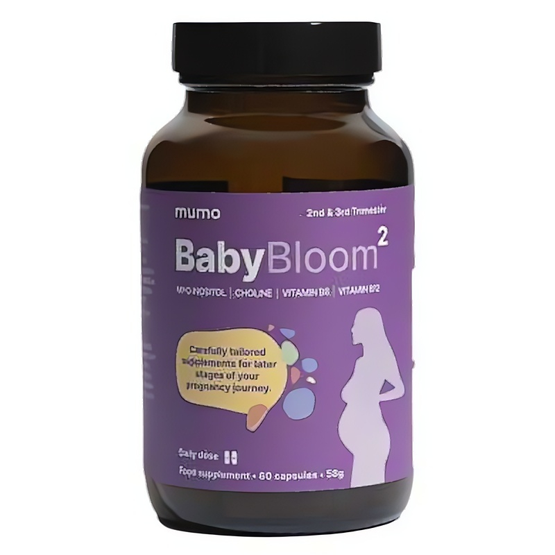 BabyBloom 2 je prémiový doplněk stravy určený pro ženy ve 2. a 3. trimestru těhotenství. Obsahuje myo-inozitol a L-cholin bitartrát, které přispívají k normálnímu metabolismu lipidů a podporují správný vývoj nervové soustavy plodu. Dále je obohacen o vitaminy B6 a B12, které napomáhají udržení normální činnosti nervového systému a snižují únavu. Doporučuje se užívat 2 kapsle denně nalačno, ideálně ráno. BabyBloom 2 je veganský a bez laktózy, což z něj činí skvělou volbu pro zdravý životní styl během těhotenství.