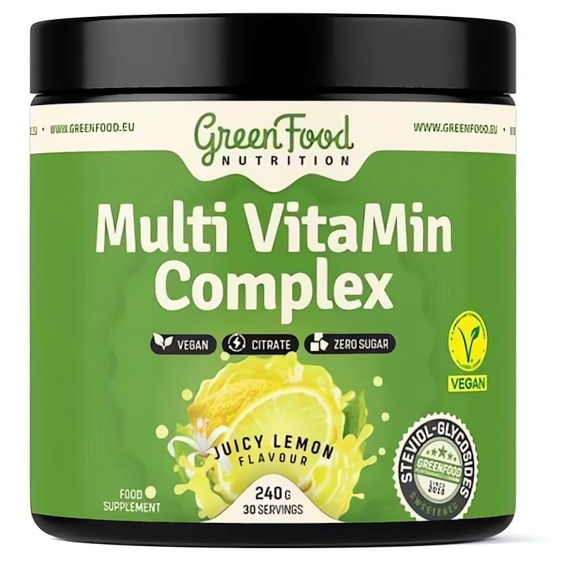 Multi VitaMin Complex 240 g Juicy lemon je vysoce kvalitní doplněk stravy, který kombinuje klíčové vitamíny a minerály pro podporu vašeho zdraví a vitality. Obsahuje snadno vstřebatelné formy vápníku a draslíku, které přispívají k silným kostem a správné funkci svalů. Vitamín C chrání buňky před oxidativním stresem a podporuje imunitní systém, zatímco vitamín D3 napomáhá vstřebávání vápníku a zdraví kostí a zubů. Vitamín K2 zajišťuje normální srážlivost krve a udržení zdravého stavu kostí. Tento produkt je vhodný pro vegany a neobsahuje laktózu ani lepek. Užívejte 1x denně rozmíchaný ve vodě pro maximální účinek.