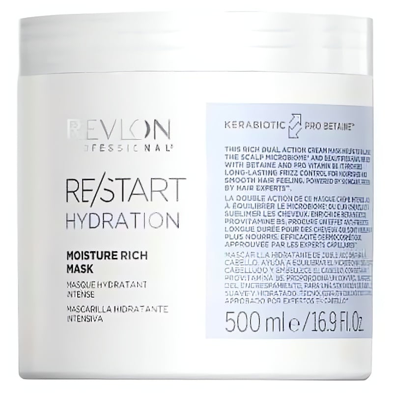 Hydratační maska na vlasy Restart Hydration od značky Revlon Professional je ideálním řešením pro suché a poškozené vlasy. Obsahuje betain a provitamín B5, které pronikají hluboko do struktury vlasů a poskytují intenzivní hydrataci. Tato bohatá krémová maska nejenže zanechává vlasy hladké a vyživené, ale také účinně redukuje krepatění, čímž usnadňuje jejich úpravu. Použití je jednoduché: naneste masku od středu ke konečkům, nechte působit 3-5 minut a důkladně opláchněte. Dopřejte svým vlasům péči, kterou si zaslouží, a užijte si zdravější a krásnější vzhled.