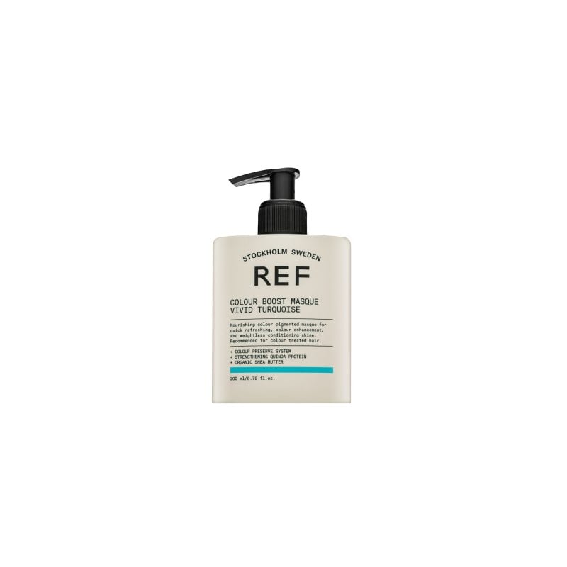 REF Colour Boost Masque v odstínu Vivid Turquoise je vyživující maska, která oživí barvu vašich vlasů a dodá jim intenzivní lesk. Díky unikátním barevným pigmentům se vaše vlasy promění v zářivý klenot, který upoutá pozornost. Tato maska je ideální pro barvené vlasy, které potřebují obnovit svou živost a lesk mezi návštěvami kadeřníka. Obsahuje arganový olej pro hloubkovou hydrataci, bambucké máslo pro intenzivní výživu a keratin, který posiluje strukturu vlasů. Použijte ji na umyté vlasy a nechte působit 3-10 minut pro maximální efekt. Vhodná pro všechny typy vlasů, REF Colour Boost Masque je klíčem k oslnivému vzhledu.