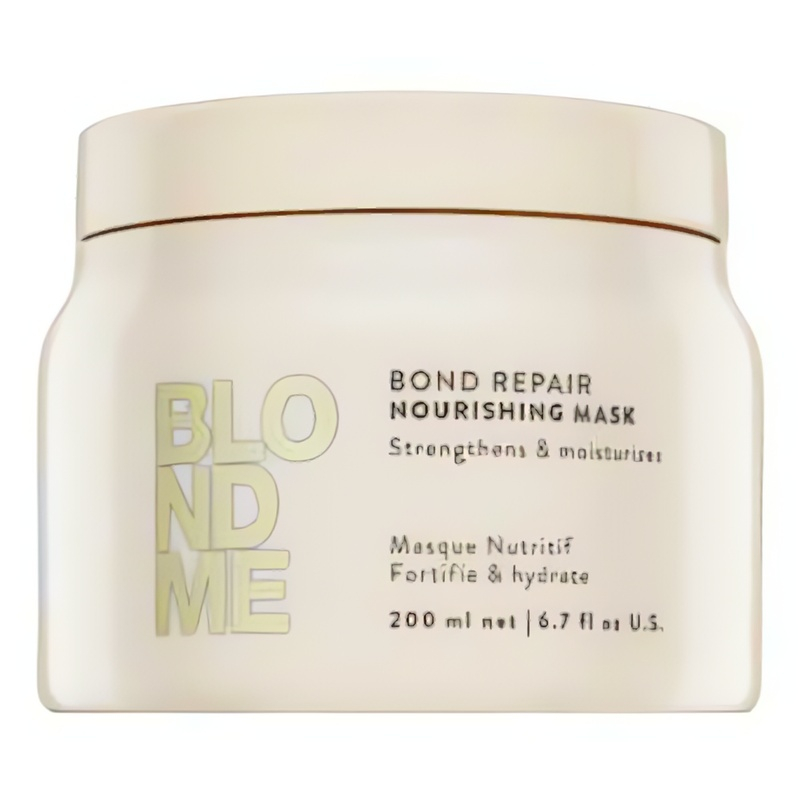 Schwarzkopf Professional BlondMe Bond Repair Nourishing Mask je vyživující maska určená pro blond vlasy, která přináší revoluční péči a obnovu. Její unikátní složení, obohacené o keratin a olej z meruňkových jader, posiluje vnitřní strukturu vlasů a dodává jim potřebnou hydrataci. Maska je ideální pro barvené vlasy, které vyžadují extra výživu a ochranu před poškozením. Po aplikaci se vlasy stávají silnějšími, lesklejšími a zdravějšími. Pro dosažení optimálních výsledků se doporučuje pravidelné používání. Dopřejte svým blond vlasům luxusní péči, kterou si zaslouží.
