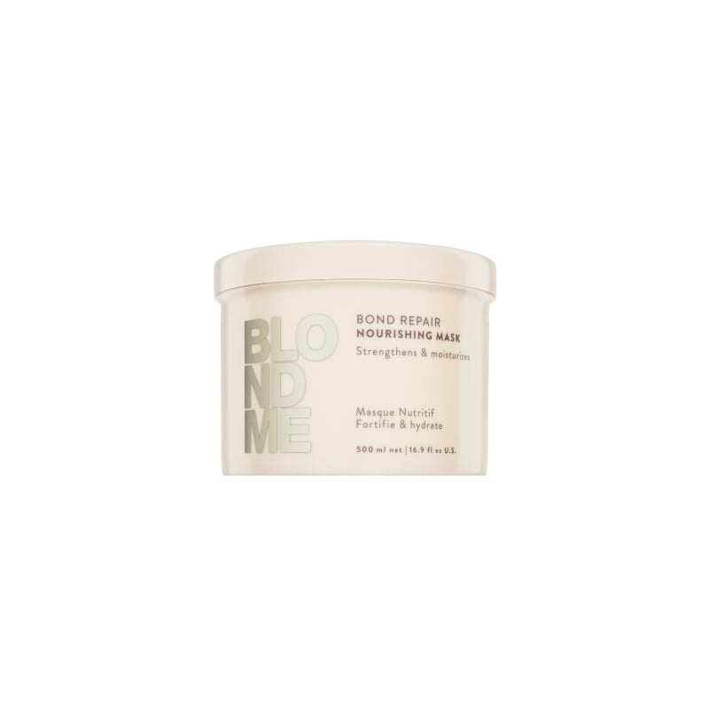 Schwarzkopf Professional BlondMe Bond Repair Nourishing Mask je vyživující maska určená pro blond vlasy, která poskytuje hloubkovou regeneraci a ochranu. Její unikátní složení s keratinem, panthenolem, kyselinou hyaluronovou a olejem z meruňkových jader posiluje vlasovou strukturu, zajišťuje hydrataci a dodává lesk. Maska obnovuje poškozené vazby, čímž zvyšuje pevnost a pružnost vlasů. Ideální pro barvené a poškozené vlasy, které potřebují intenzivní péči. Použití je jednoduché: naneste na umyté vlhké vlasy, nechte působit 5-10 minut a důkladně opláchněte. Pro optimální výsledky kombinujte s dalšími produkty z řady BlondMe.