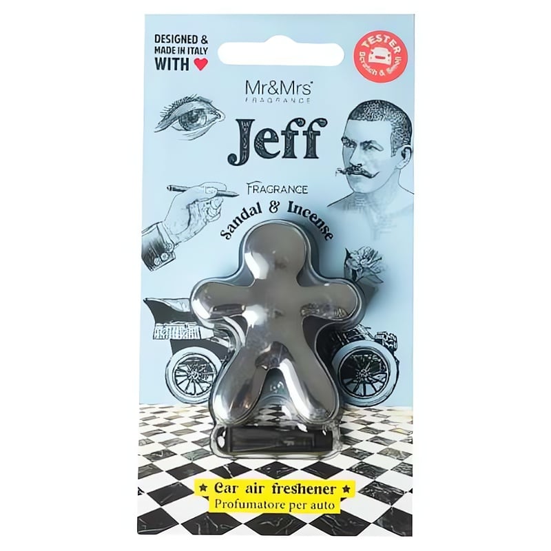 Vůně Jeff Chrome Sandal & Incense je příběhem, který se rodil s vášní pro přírodní esence a touhou vytvořit harmonii v každém voze. Značka MR&MRS FRAGRANCE klade důraz na kvalitu, kterou zajišťují speciální esenciální oleje, jež osvobozují interiér vozu od nežádoucích pachů a naplňují ho svěžestí. Elegantní design panáčka, který se snadno zasune do ventilátoru, přináší do každého jízdního zážitku kousek umění. Vůně kombinuje orientální tóny s nádechem svěžesti, což ji činí ideální pro každého, kdo hledá unikátní vůni do auta. Ponořte se do klidného světa, kde se snoubí příroda a elegance.
