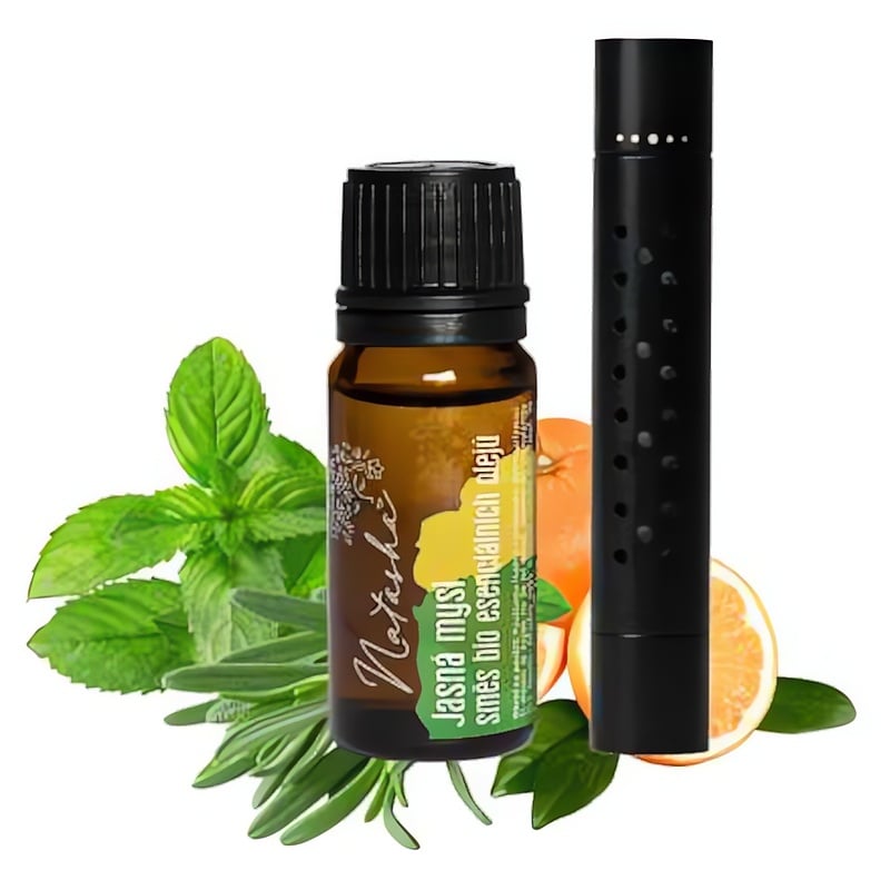 Sada difuzéru do auta Natasha s olejem Jasná mysl přináší přírodní osvěžení do vašeho vozu. Díky kombinaci esenciálních olejů z pomeranče, máty peprné a rozmarýnu podpoří vaši koncentraci a dodá energii během každé cesty. Hliníkový difuzér s vyměnitelnými bavlněnými knoty zajišťuje snadnou aplikaci a dlouhotrvající vůni bez škodlivých látek. Stačí nanést pár kapek oleje na knot a interiér vozu se naplní příjemnou atmosférou. Součástí balení jsou tři bavlněné polštářky pro snadnou výměnu. Vyrobeno v České republice s certifikací Ecogarantie, tato sada je ideální volbou pro zdravé a příjemné cestování.