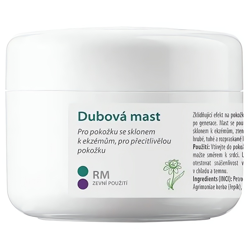 Dubová mast od Dědka Kořenáře je ideálním pomocníkem pro péči o citlivou a vysušenou pokožku. Díky svému zklidňujícímu efektu a pečlivě vybraným bylinám, jako jsou heřmánek a šalvěj, pomáhá zjemnit a zvláčnit hrubou, rozpraskanou pleť. Je vhodná pro pokožku se sklonem k ekzémům a namáhanou pleť, poskytuje ochranu po slunění i v chladném počasí. Složení obsahuje přírodní ingredience, které podporují zdraví pleti. Pro dosažení nejlepších výsledků aplikujte 1–3× denně ve velmi tenké vrstvě. Uchovávejte v chladu a temnu. Balení 100 ml.