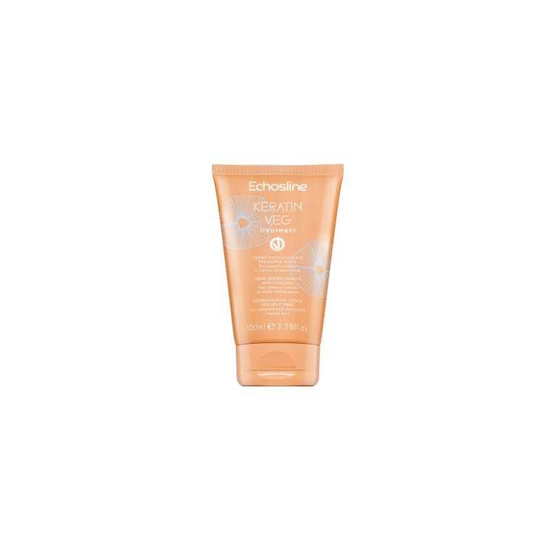 Echosline Keratin Veg Treatment je bezoplachová péče, která se zaměřuje na obnovu roztřepených konečků vlasů. Díky veganskému keratinu a přírodním olejům poskytuje intenzivní výživu, regeneraci a ochranu před poškozením. Tento krém je ideální volbou pro ženy, které chtějí dosáhnout zdravého a lesklého vzhledu svých vlasů bez složitých procedur. Jeho lehká textura se snadno vstřebává a nezatěžuje vlasy, což zajišťuje okamžité výsledky. Pravidelným používáním se zlepší vzhled a struktura vlasů, které budou hydratované a chráněné před vnějšími vlivy. Vhodné pro barvené a poškozené vlasy.