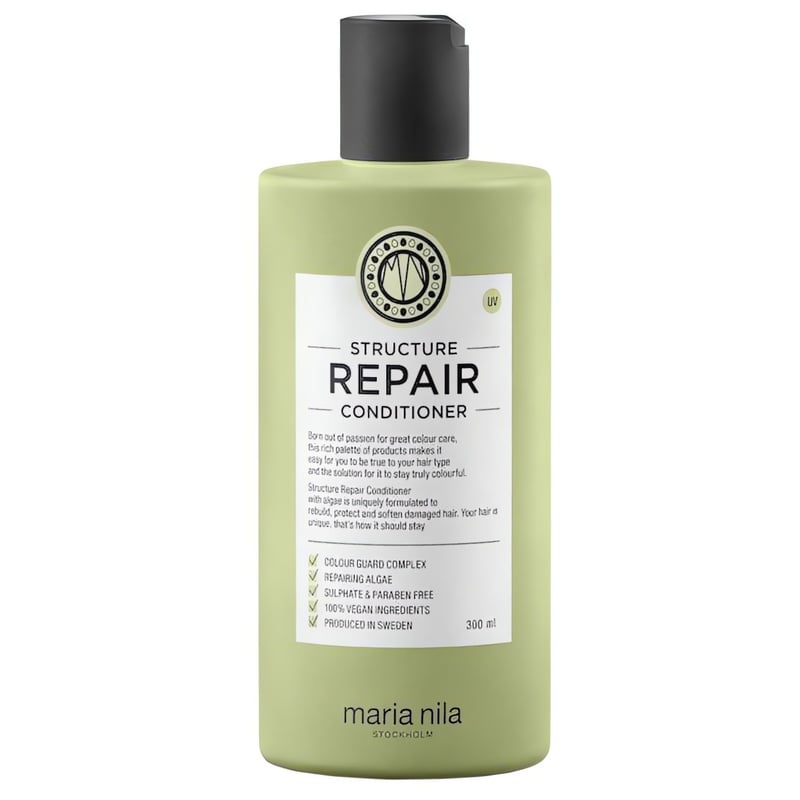 Kondicionér Structure Repair je ideálním řešením pro suché a poškozené vlasy, které potřebují intenzivní péči. Tento produkt zjemňuje a hydratuje vlasy, čímž posiluje jejich strukturu a usnadňuje rozčesávání. Obsahuje revitalizující extrakt z mořské řasy, který obnovuje přirozenou sílu, hebkost a lesk vlasů. Díky svému unikátnímu složení chrání vlasy před ztrátou barvy způsobenou mytím a tepelným stylingem. Bez obsahu sulfátů a parabenů je kondicionér 100 % veganský a šetrný k přírodě. Aplikujte na umyté vlasy, nechte chvíli působit a důkladně opláchněte pro maximální efekt.