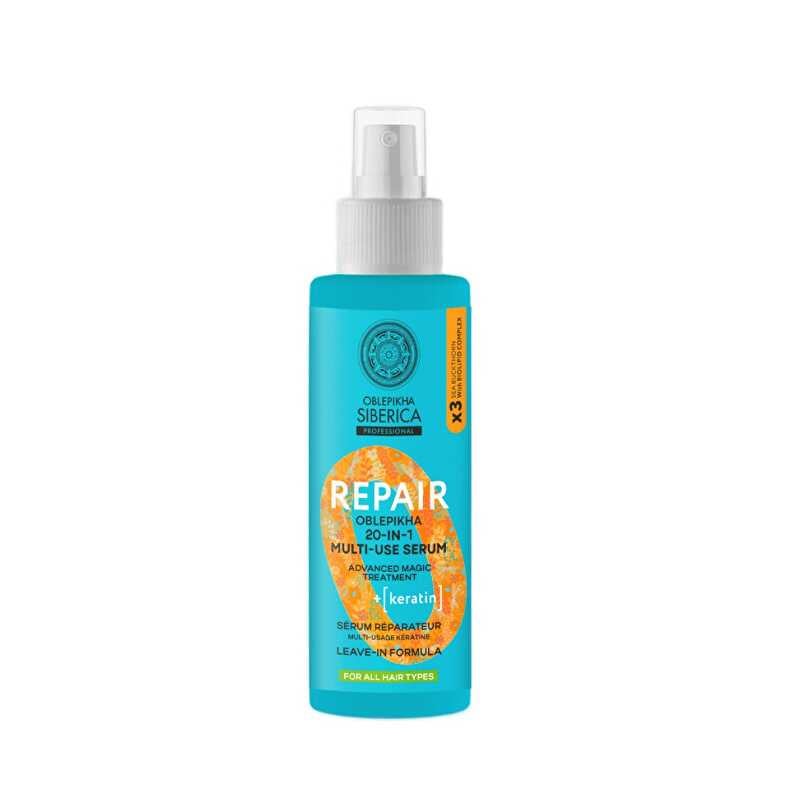 Multifunkční sérum na vlasy s keratinem Oblepikha Siberica je revoluční přípravek, který kombinuje 20 účinných látek pro revitalizaci a výživu vlasů. Díky biolipidnímu komplexu a 3-Blend Vitality komplexu s rakytníkem řešetlákovým se vlasy obnovují od kořínků až ke konečkům, což přináší zdravý a lesklý vzhled. Keratin dodává vlasům hebkost a usnadňuje jejich rozčesávání, čímž eliminuje roztřepené konečky a suchost. Použití je jednoduché: stačí nastříkat na vlhké vlasy a neoplachovat. Vychutnejte si krásu a zdraví svých vlasů s tímto multifunkčním sérem.