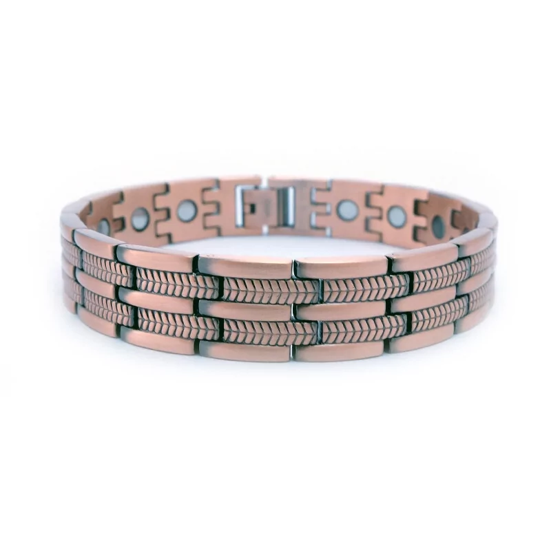Vývoj a výroba měděného magnetického náramku probíhá s důrazem na kvalitu a přírodní složení. Měď, jakožto stopový prvek, hraje klíčovou roli v látkové výměně a přispívá k celkovému zdraví. V náramku jsou integrovány magnety, které zlepšují prokrvení a okysličování krve, což napomáhá transportu živin do buněk a odvodu odpadních látek. Tento náramek je ideální pro podporu imunitního systému a zmírnění bolestí kloubů. Při nošení může dojít k jemnému zezelenání kůže, což značí, že tělo měď potřebuje. Materiál je 99,9 % čistá měď, zaručující vysokou účinnost a bezpečnost.