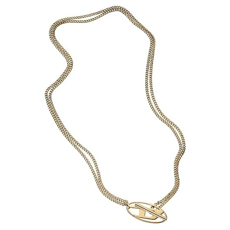 Dvojitý pozlacený unisex náhrdelník z oceli od značky Diesel je výjimečným kouskem, který osloví jak muže, tak ženy. Jeho design vyniká minimalistickou elegancí, přičemž ozdoba ve tvaru ikonického loga dodává šperku osobitý styl. Kvalitní ocel s pozlaceným PVD povlakem zaručuje luxusní vzhled a dlouhou životnost. Délka náhrdelníku 45 cm a praktické americké zapínání umožňují snadné přizpůsobení. Tento šperk nejen skvěle doplní váš outfit, ale také symbolizuje odvahu a individualitu. Dodáván je v originálním balení, ideální pro darování.