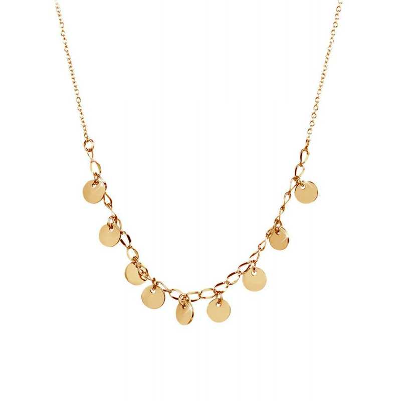 Penízkový náhrdelník z pozlacené oceli od značky Troli spojuje eleganci s moderním designem. Každý drobný penízek s průměrem 0, 6 cm symbolizuje hojnost a štěstí, zatímco minimalistický styl dodává šperku nadčasový vzhled. Délka 40 cm s možností prodloužení o 5 cm perfektně obepne váš dekolt a vytvoří tak sofistikovaný dojem. Vyrobený z kvalitní pozlacené oceli, náhrdelník je odolný a snadno se udržuje, což jej činí ideálním doplňkem pro každodenní nošení i výjimečné příležitosti. Ozdobte se šperkem, který vyjadřuje váš osobní styl a přitom nese skrytou symboliku. Dodává se v originálním balení, které z něj činí skvělý dárek.