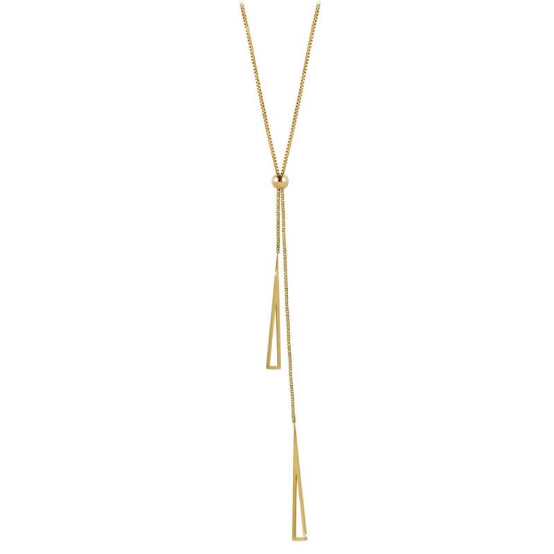 Posuvný pozlacený náhrdelník značky Troli vyniká minimalistickým designem s efektními trojúhelníkovými přívěsky. Je vyroben z kvalitní pozlacené oceli, zaručující dlouhou životnost a odolnost. Trojúhelníky symbolizují stabilitu a harmonii, čímž dodávají šperku hlubší význam. Délka náhrdelníku činí 52 cm s možností prodloužení o 5 cm, což umožňuje přizpůsobení dle vašich preferencí. Praktické zapínání na karabinku zajišťuje snadné nošení. Tento náhrdelník je ideálním doplňkem pro každou příležitost, který elegantně ozdobí váš dekolt a doplní váš styl.